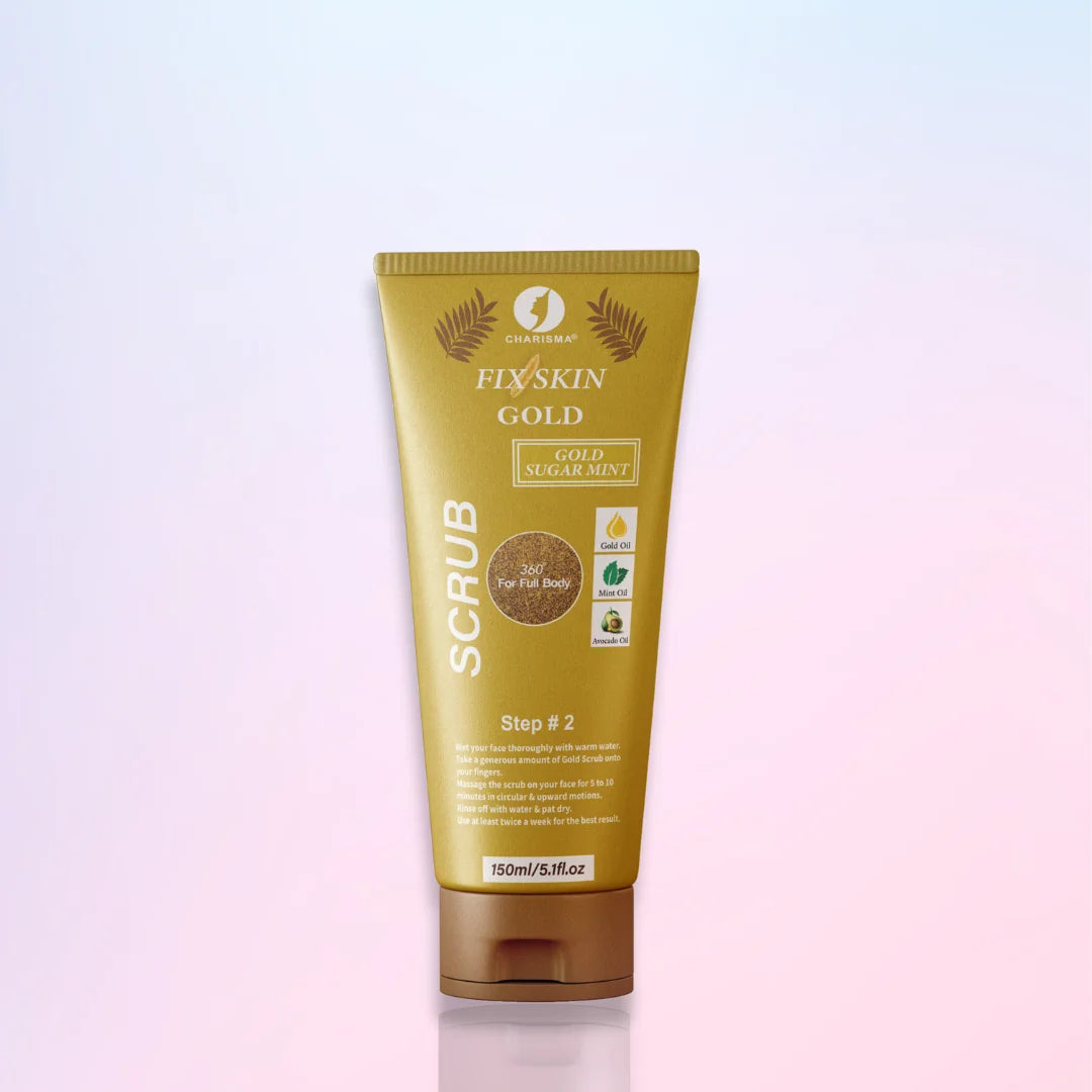 - Take a generous amount of Gold Scrub onto your Fingers Massage the scrub on your face for 5 to 10 minutes in a circular and upward motion